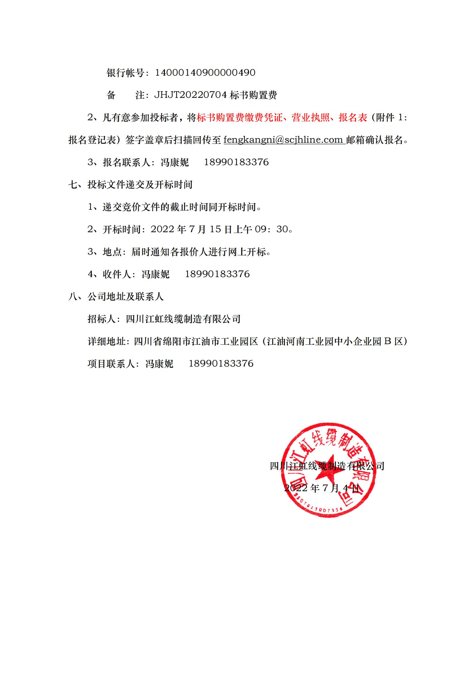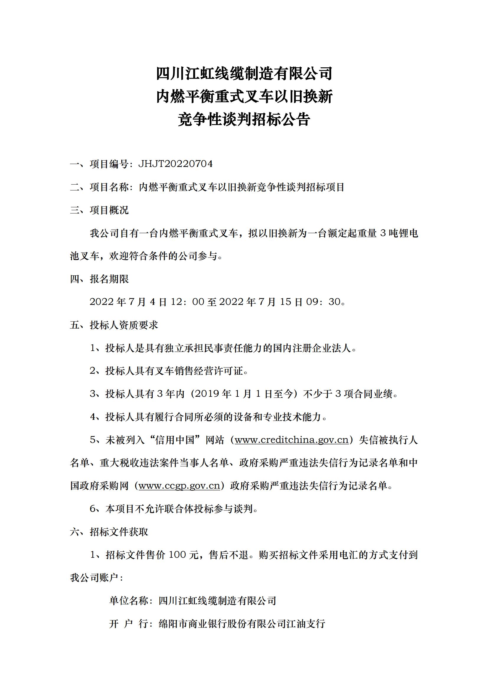 四川江虹线缆制造有限公司内燃平衡重式叉车以旧换新竞争性谈判招标公告