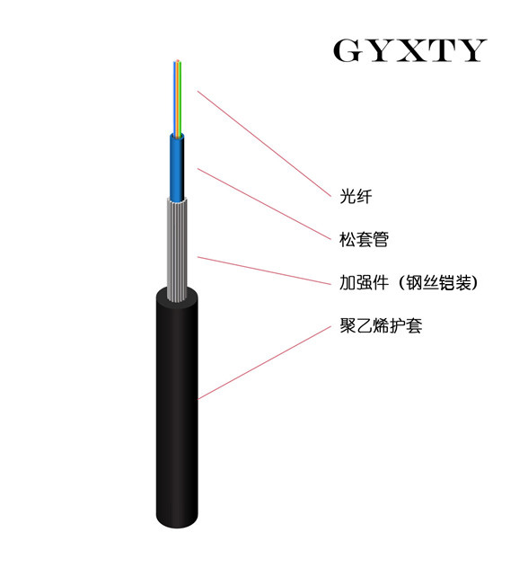 中心管式室外光缆由光纤、中心套管、加强构件、阻水材料和护层构成。